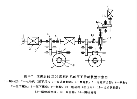 軋機(jī)的壓下裝置采用雙電機(jī)驅(qū)動(dòng)的原因是; 電動(dòng)機(jī)飛輪力矩小,相應(yīng)的啟動(dòng)、制動(dòng)時(shí)間短,故可縮短壓下調(diào)整時(shí)間。