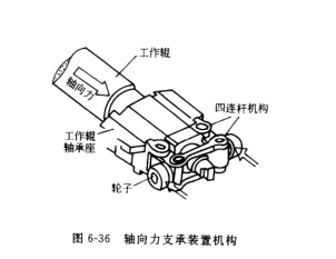 工作輥的止椎軸向力支承裝置機構如圖 6-36 所示。該裝置裝在 工作輥工作側的軸頭上。